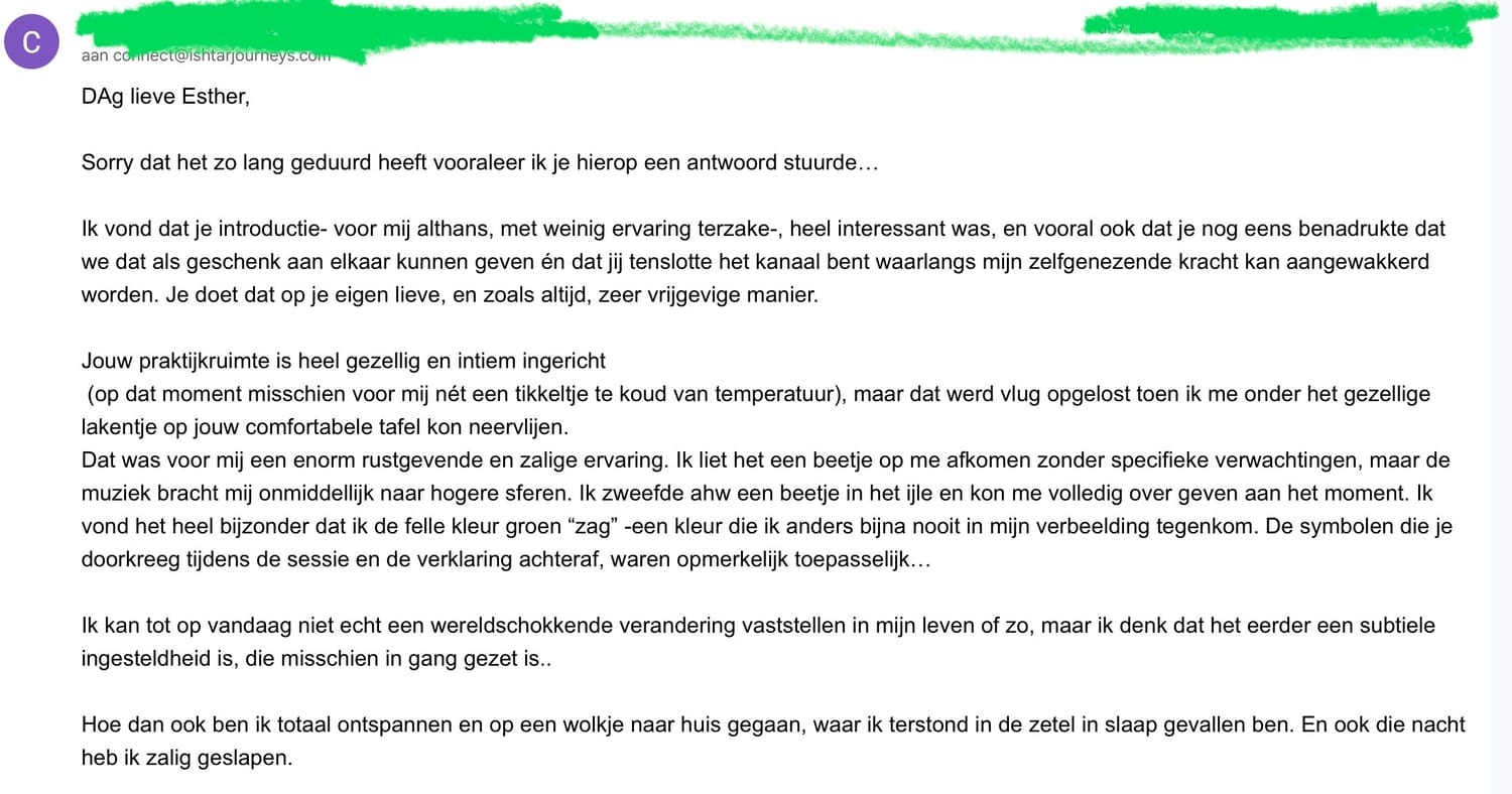 Een plek waar je niets hoeft te bewijzen, waar heling ontstaat door afstemming, aanwezigheid en energie.